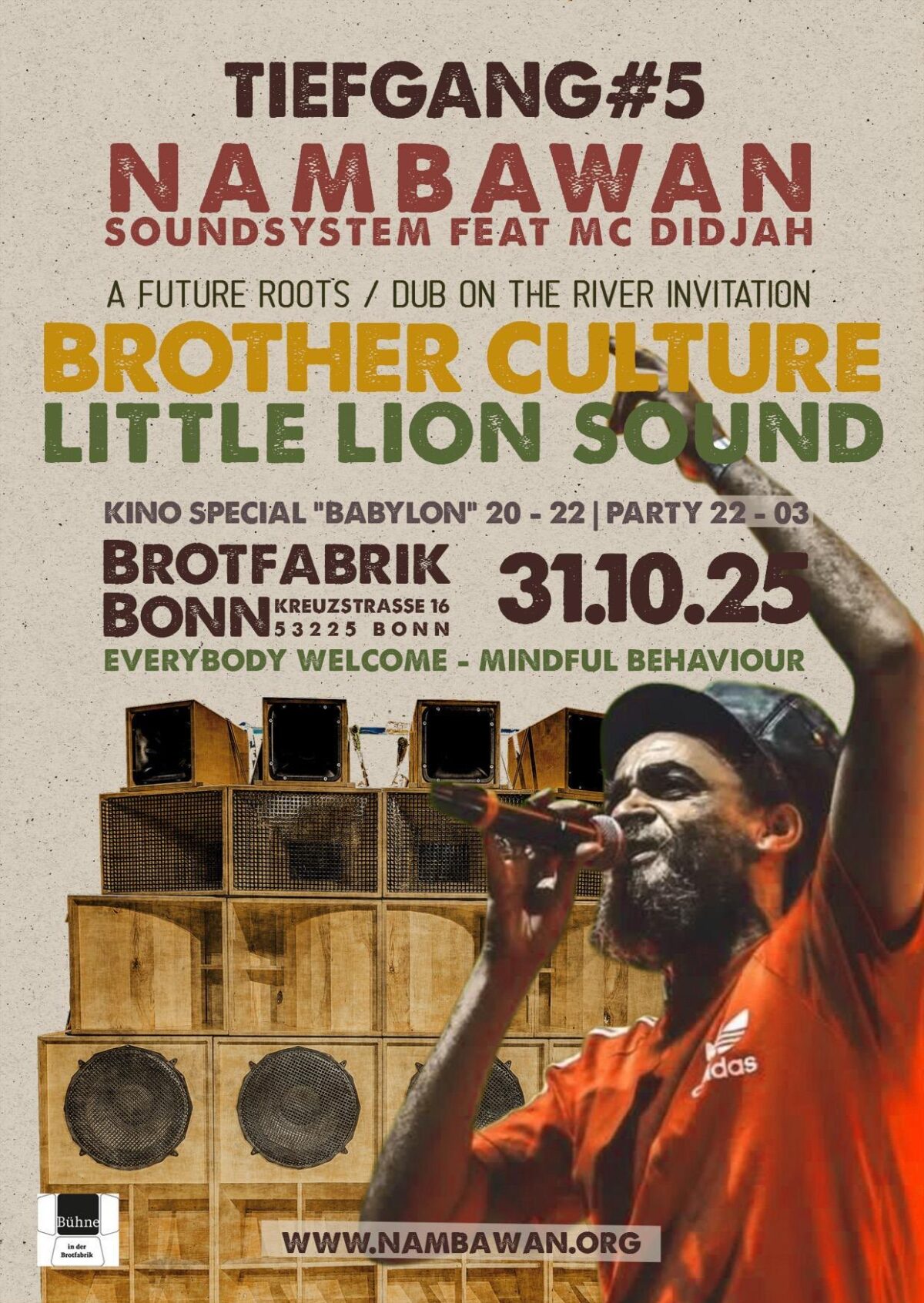 31.10.25: TIEFGANG #5 – NAMBAWAN SOUNDSYSTEM and DUB ON THE RIVER present: BROTHER CULTURE & LITTLE LION SOUND